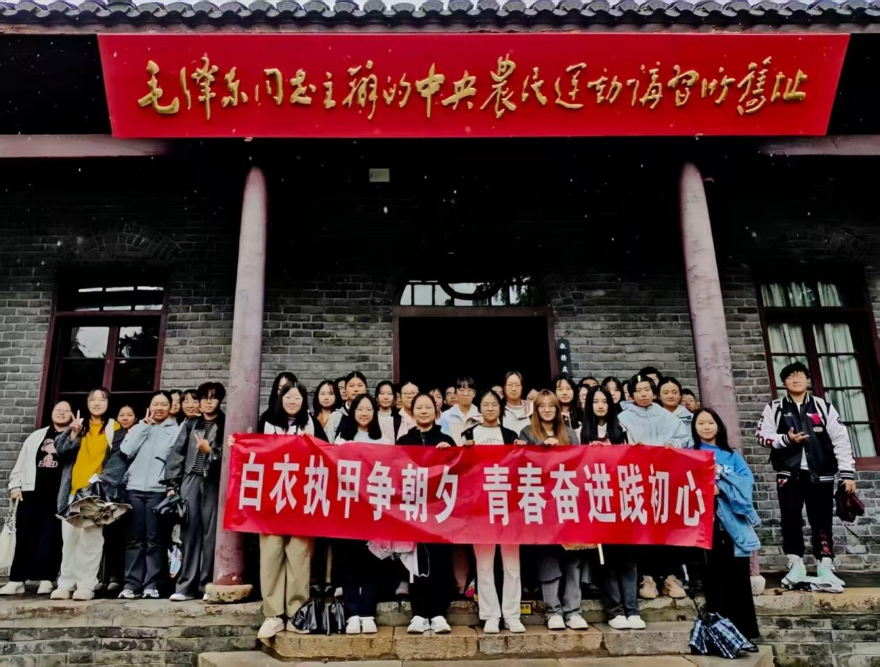 此次活动中,我们通过走、看、讲、思、行的沉浸式学习,打破了传统课堂的边界。在农讲所旧址的斑驳课桌旁,仿佛听到革命青年为理想辩论的声音;在毛泽东同志旧居的简朴房间里,感受到先辈在艰苦环境中探索真理的执着。这种沉浸体验的活动模式,让思政教育从理论说教转化为情感共鸣。我们认识到,青春的价值不仅在于知识的积累,更在于将个人理想与国家需要相结合,像革命先辈那样,在时代洪流中找准自己的奋斗坐标,而那白衣就是我们在新时代的战袍,与病痛斗争是我们护理人的使命,我们要只争朝夕,不懈奋斗,在平凡岗位上守护生命之光!