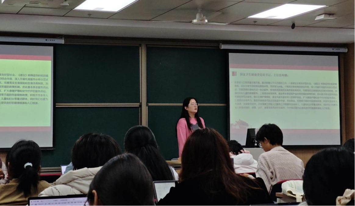结合护理与药学的专业特色,她鼓励同学们心怀“国之大者”,将个人成长融入健康中国建设,苦练专业本领,勇于创新突破,为医疗卫生事业贡献青春力量。
