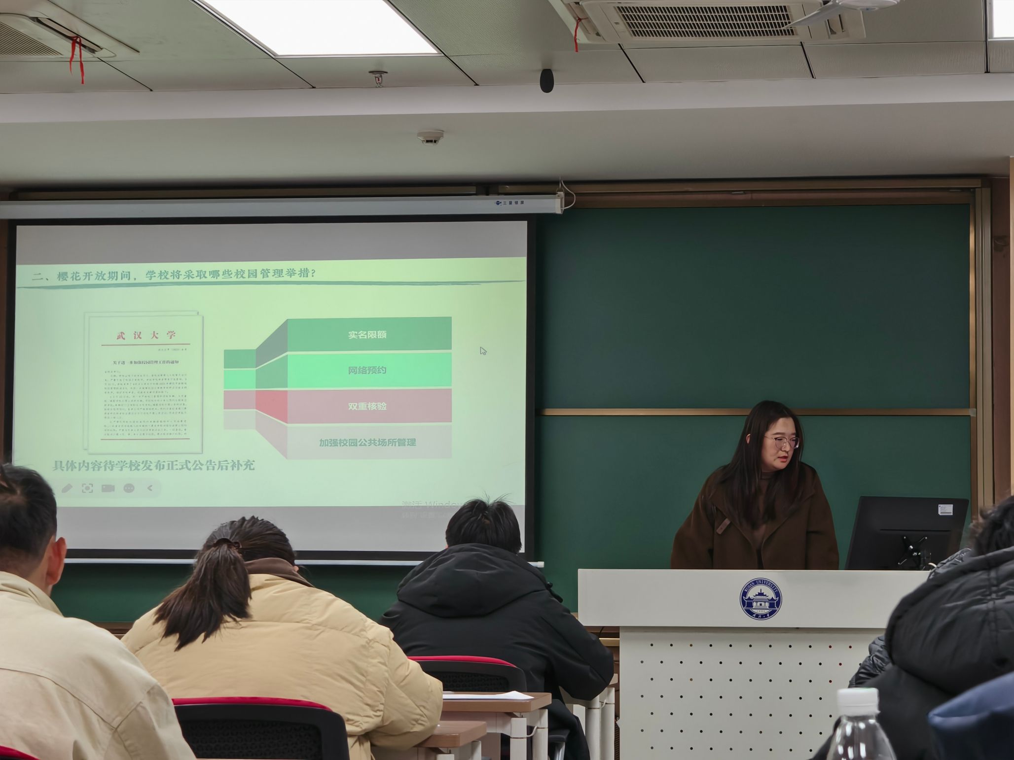 各年级班会上,均强化学风建设,明确寝室纪律与学术诚信要求;开展安全警示教育,结合典型案例讲解人身、网络、宿舍用电等安全知识,普及防电信诈骗技巧;强化思政教育与网络文明引导,要求同学们坚定理想信念,在网络空间理性发声、传播正能量。此外,班会还强调了樱花季校园开放注意事项,引导同学们自觉遵守校园管理规定,展现武大学子与护理学子的良好风貌。