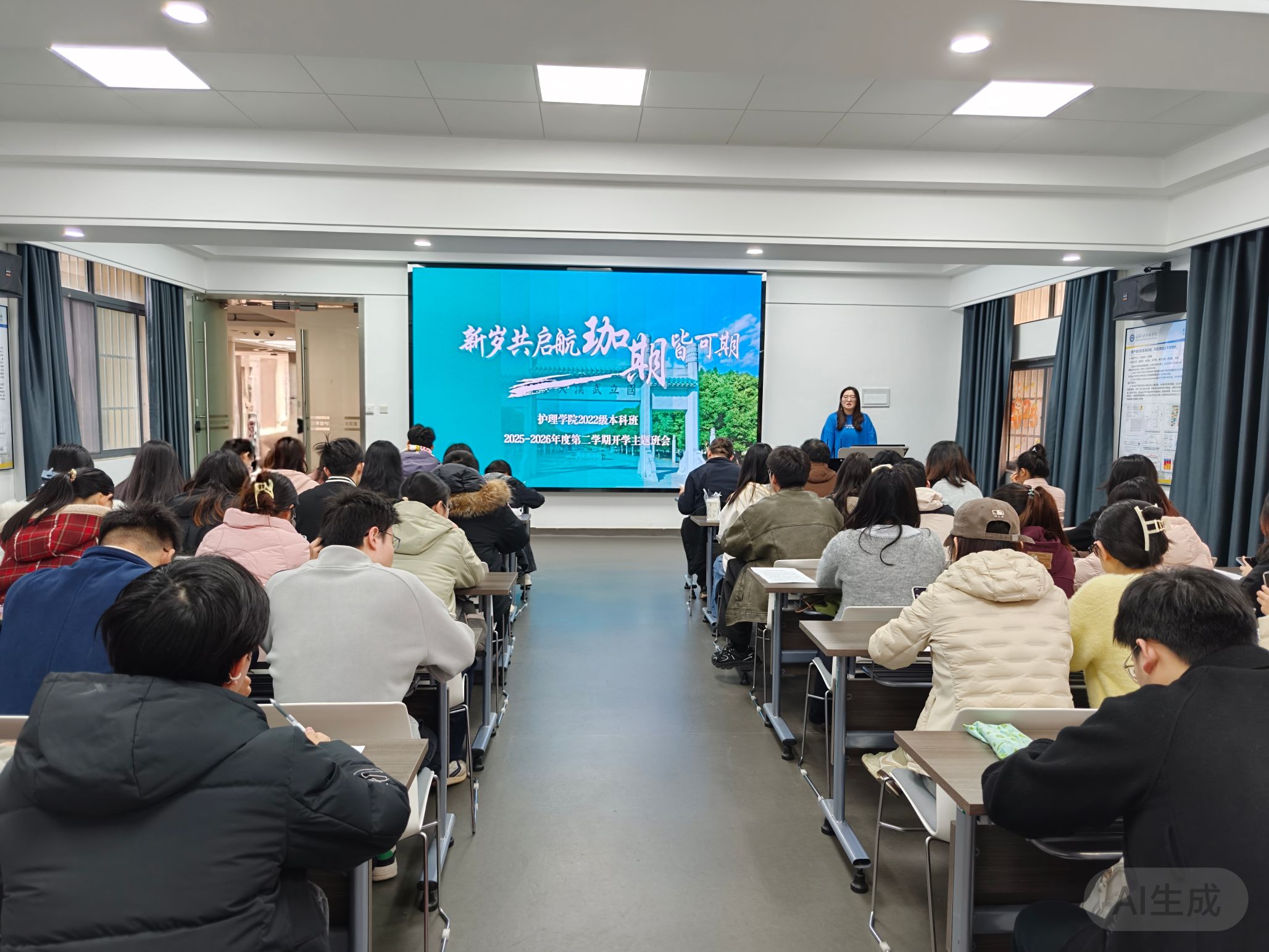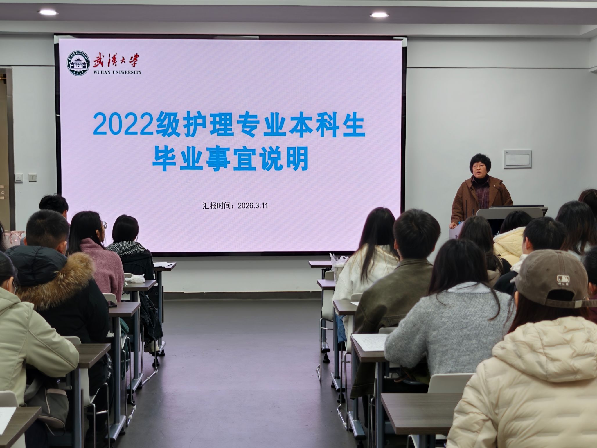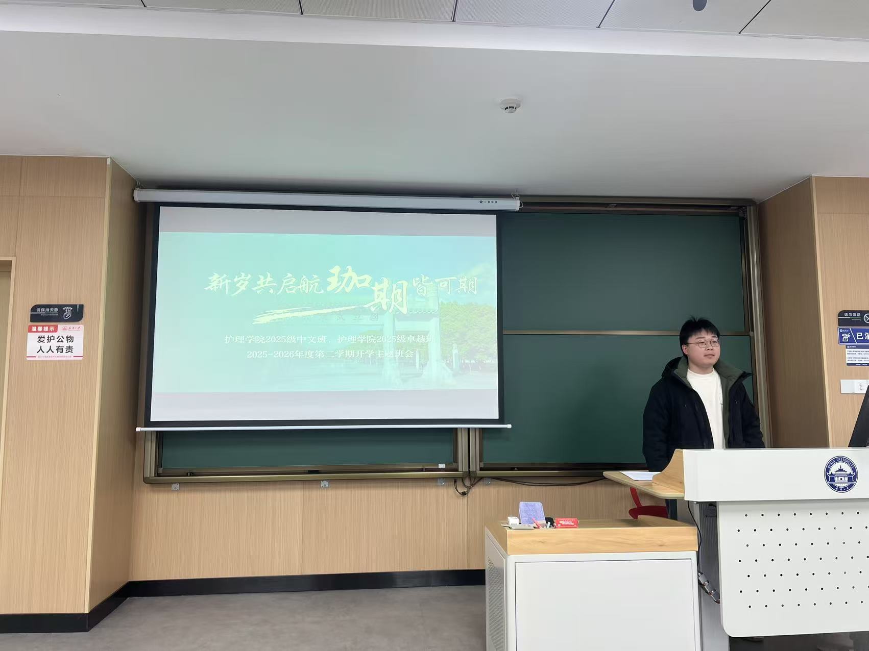 将持续聚焦学生成长需求,扎实推进各项学生工作。也希望各位同学以此次班会为契机,把思想和行动统一到新学期的目标任务上来,遵守校规校纪,脚踏实地、勤学善思,以饱满的热情和昂扬的姿态投入到接下来的学习生活中,在珞珈山下书写属于护理学子的青春答卷。