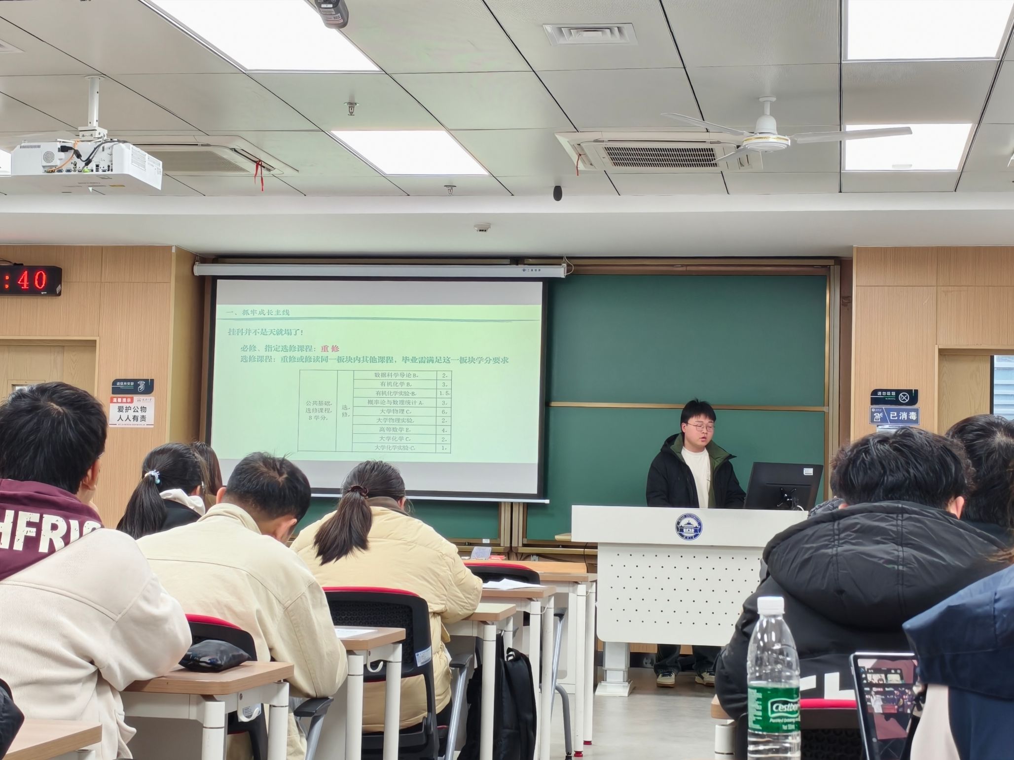 结合各年级的学业特点与发展需求,班会开展了精准化、分层化指导,切实解决不同年级学生的核心困惑。针对2023级学生,重点围绕就业与发展方向展开,详细分析当下保研、考研及护理就业形势,解读相关政策要求,为学生明确未来发展路径提供专业指导;针对2024级学生,强调专业学习深化与未来规划衔接的重要性,对同学们普遍关注的保研考研问题进行分析,解答大家在备考方向、资料选择、时间管理等方面的困惑,引导鼓励大家尽早探索生涯规划;针对2025级学生,重点分析上学期学业情况,梳理学习共性问题,强调学业的核心重要性,讲解本学期课程修读、选课流程、学分要求等关键事项,帮助同学们夯实学业基础。