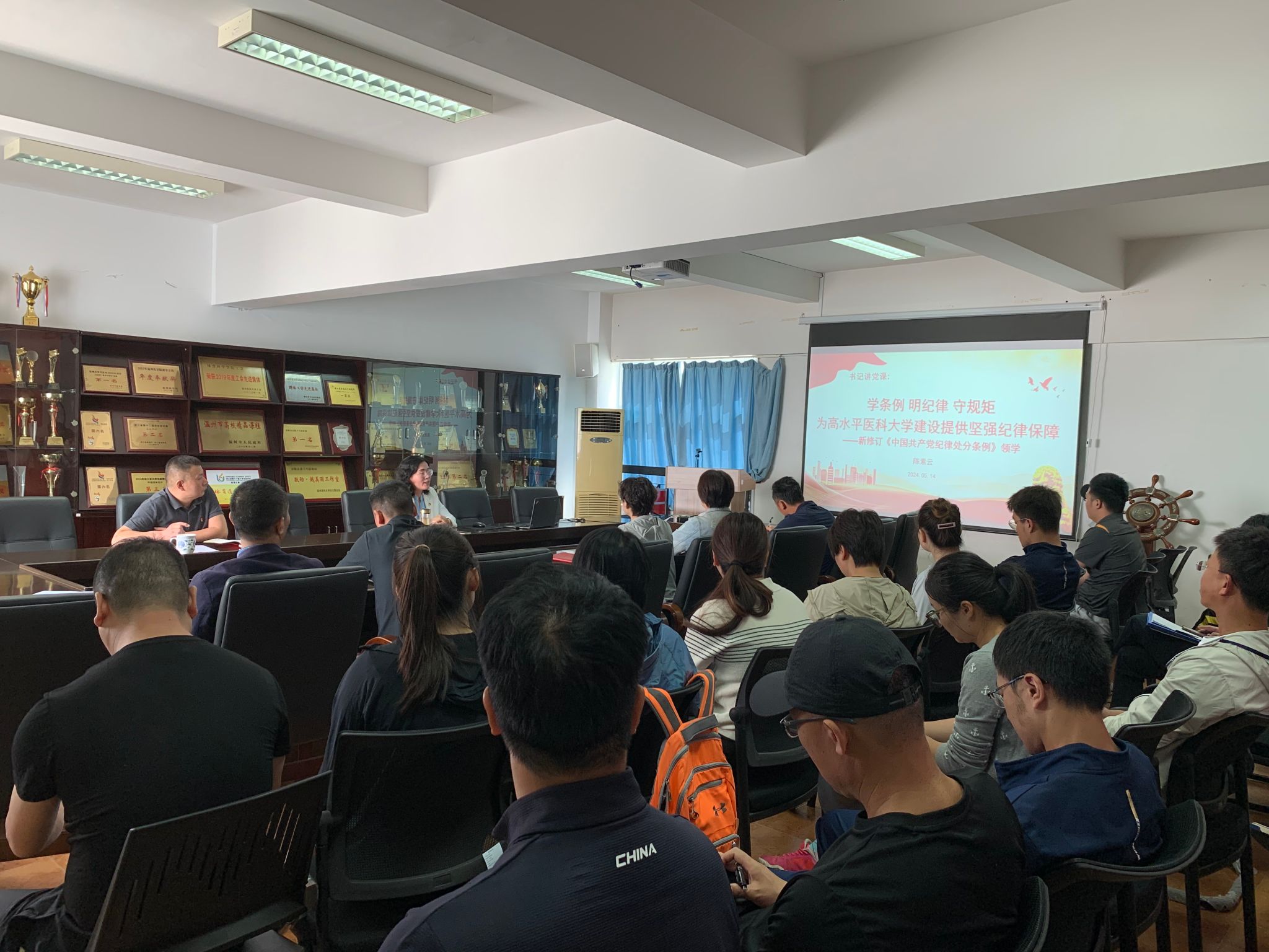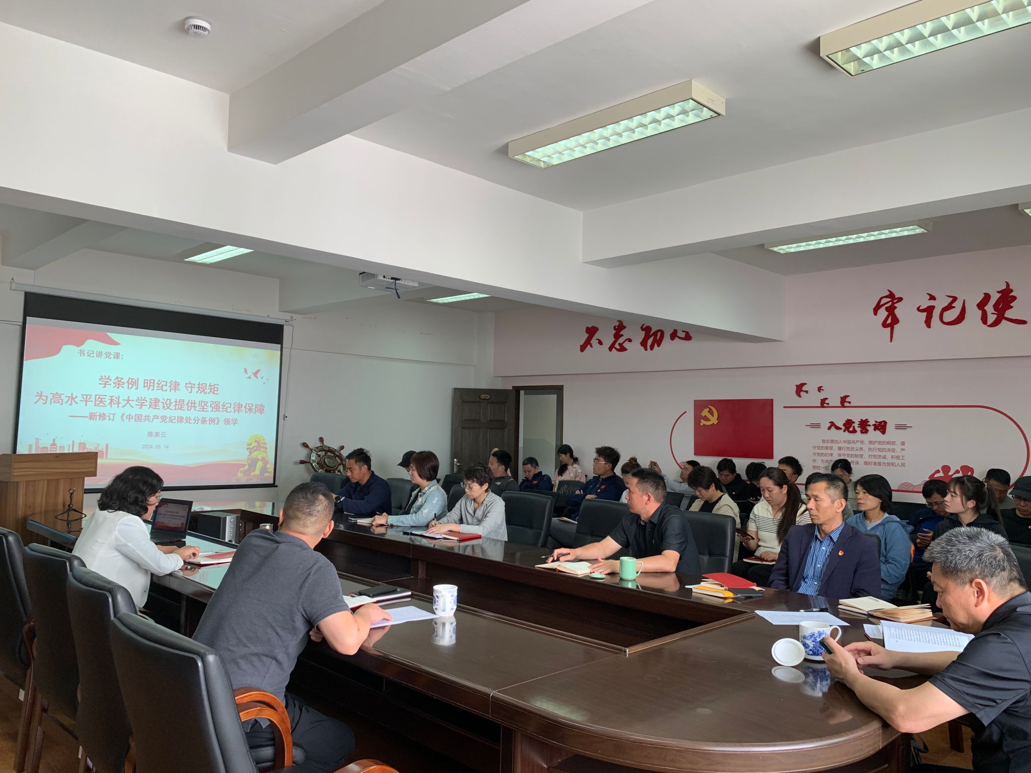 为深入学习贯彻习近平总书记关于党纪学习教育的重要讲话重要指示精神,认真学习新修订的《中国共产党纪律处分条例》,根据学校党委全面部署要求,5月14日上午,抖阴 党委开展党纪学习教育专题党课,由党委书记陈素云领学辅导。组织员赵建中、全体党员教师参加学习。