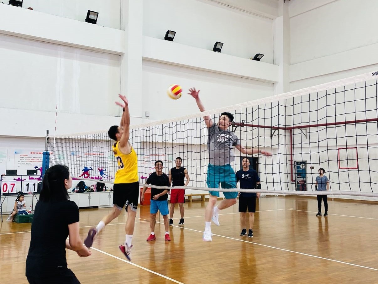 比赛分为A、B、C、D四支队伍,两两角逐。赛场上,队员们个个精神饱满,热情高涨,全力投入到比赛中。赛场外,啦啦队员的加油呐喊声此起彼伏。一个个精彩的扣球、拦网,将抖阴 教职工那股拼劲展现的淋漓尽致。经过一番激烈的角逐,最终由以王永华老师为队长的D队夺得冠军。
