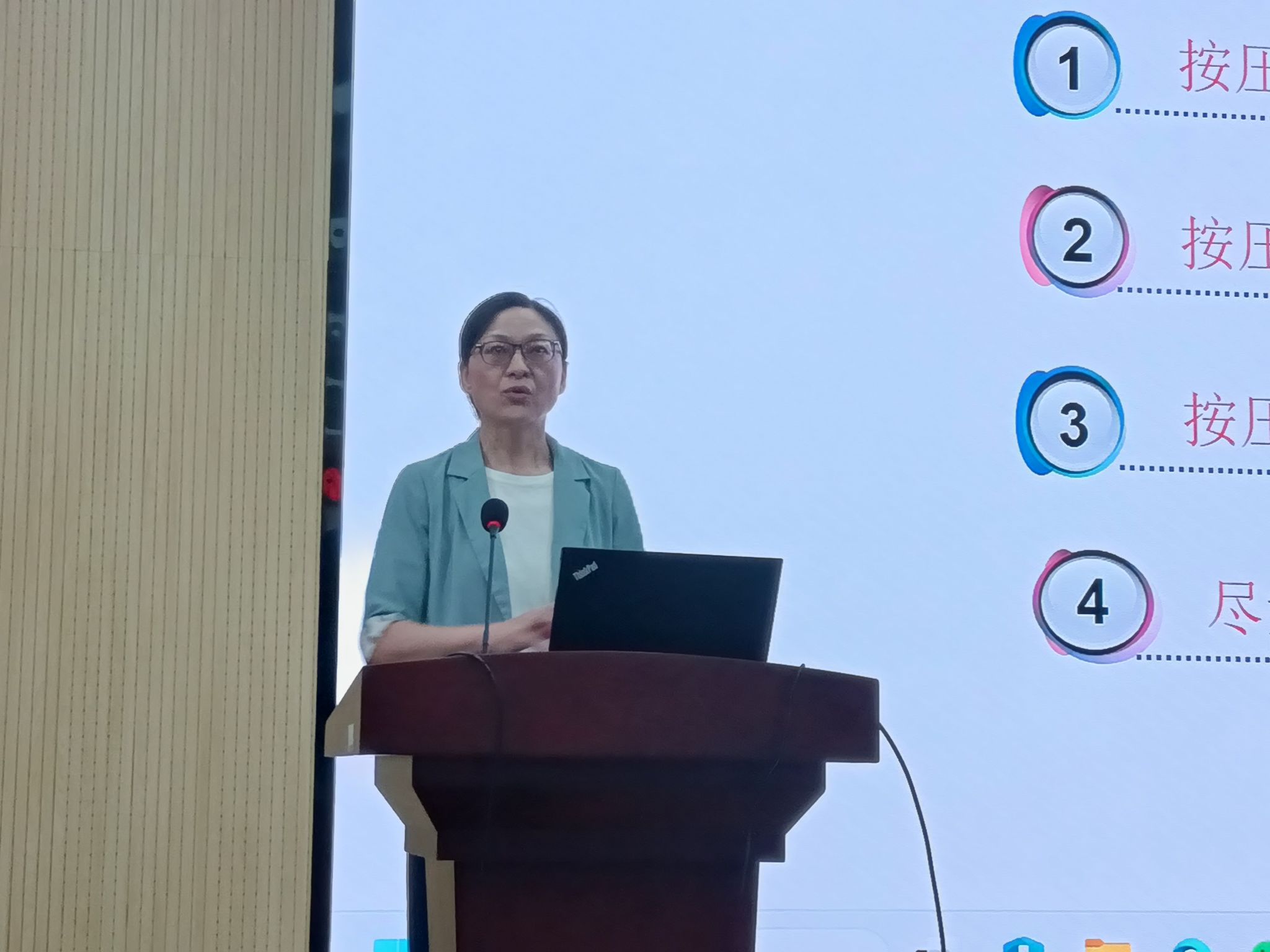 整个培训活动分为理论培训和实践演练两个部分。首先,由“天使之翼”团队的专家蔡春凤老师进行理论知识的讲解。蔡老师详细讲解了徒手心肺复苏术的步骤、操作注意事项以及AED的使用方法。蔡老师的讲解深入浅出,使师生们对急救知识有了更深入的了解。