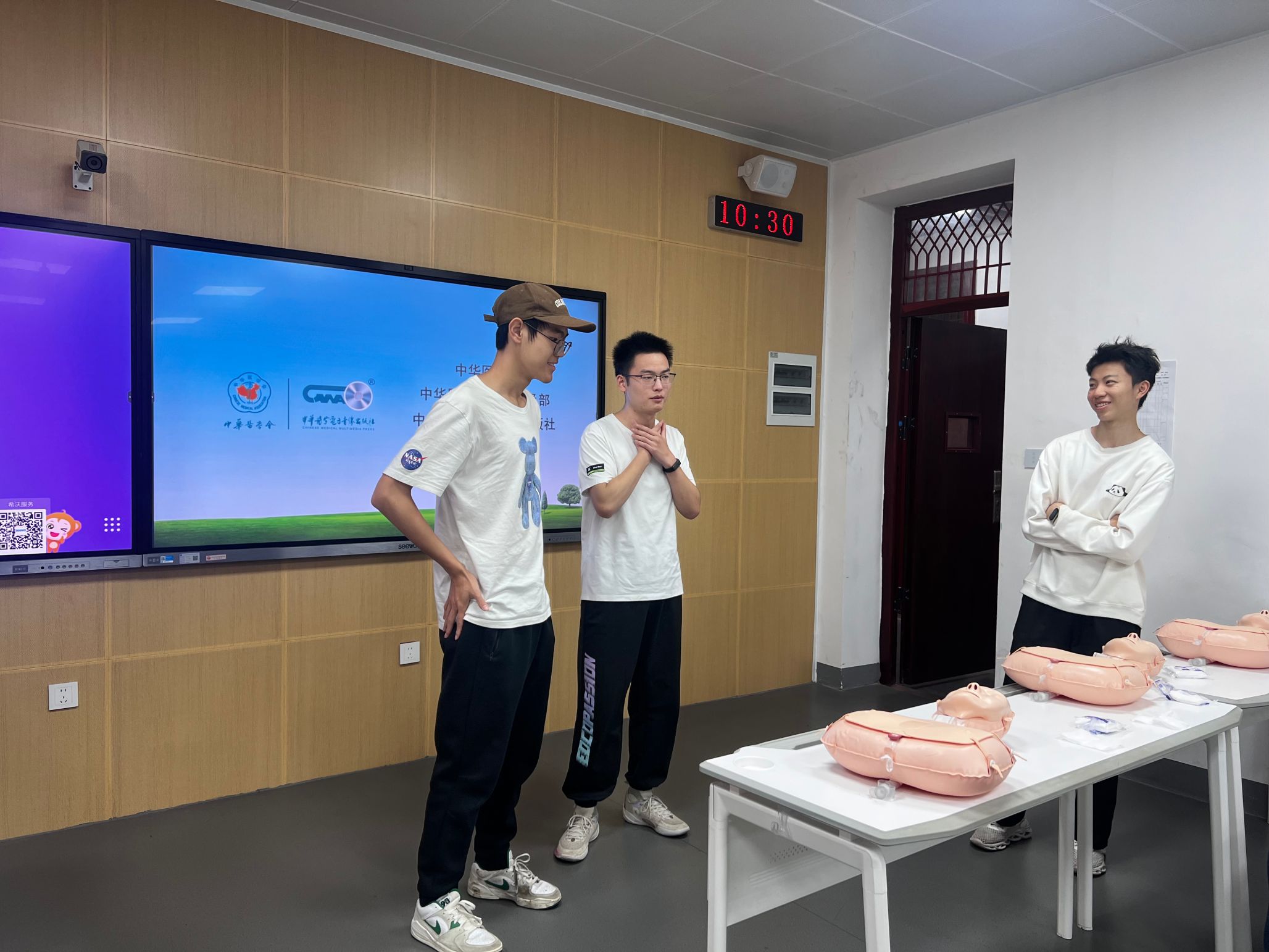 宣讲人韦清妍阐述了心肺复苏的完整步骤。利用现场提供的模拟道具,开展了急救演练,让同学们深切体会到了迅速采取行动和团队协作在急救过程中所起到的关键作用。