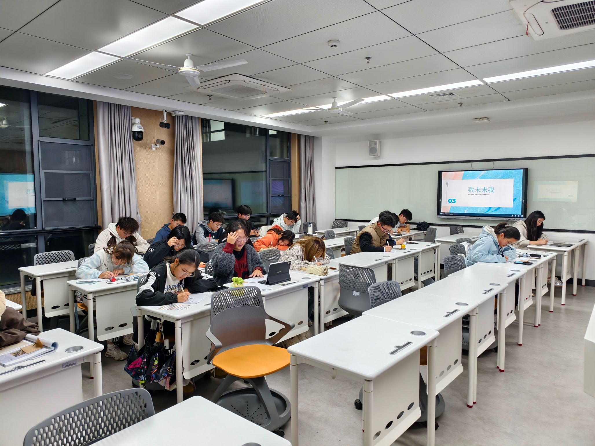 班会最后一个环节——时光慢递”,为今晚的相遇赋予了未来的意义。老师和同学沉静思绪,执笔写下《给四年后的自己》一封信,将当下的期待与目标封存于未来邮箱,交由魏老师统一保管,相约毕业之时共同启封,见证成长。
