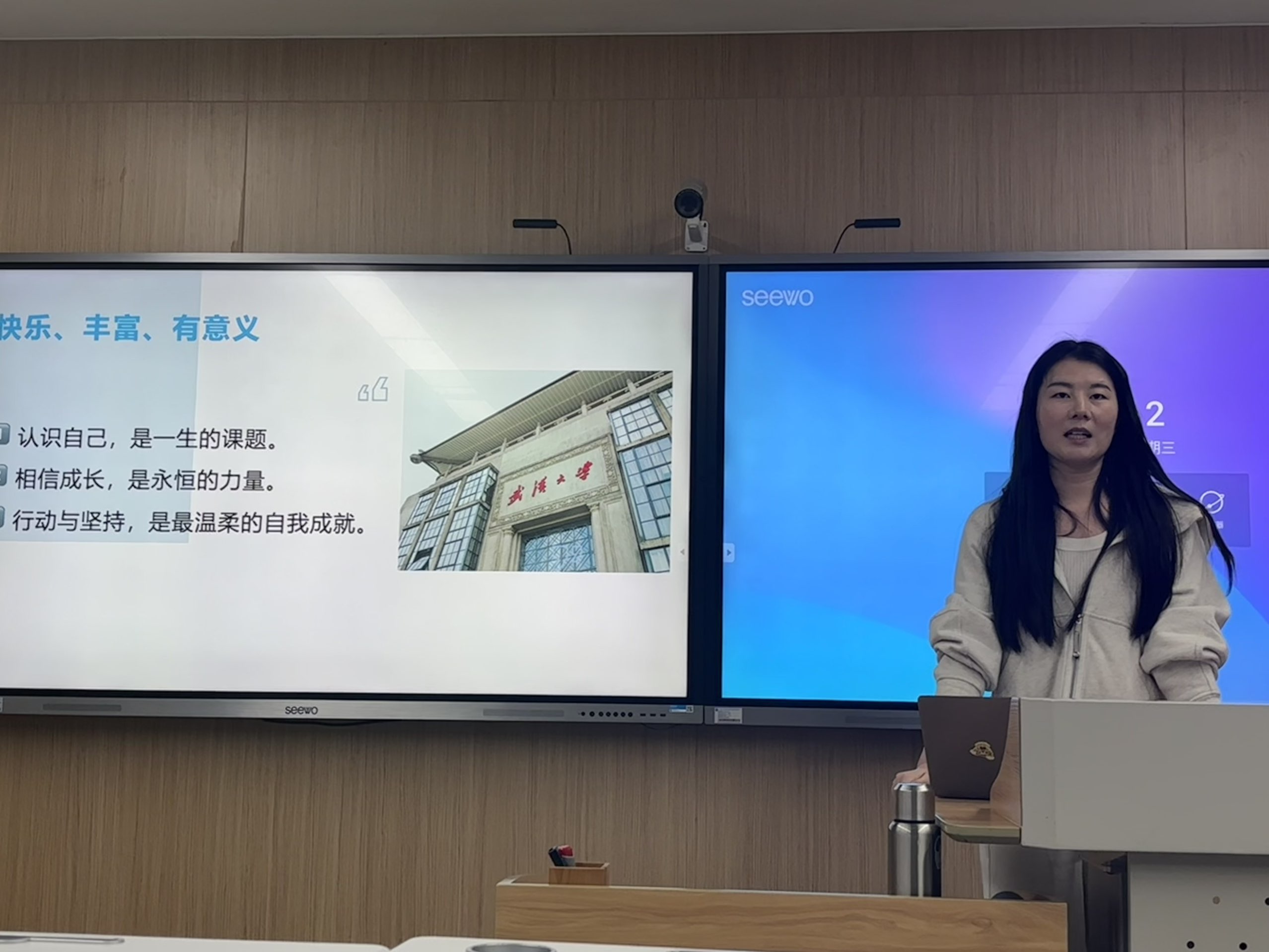 班会在班委的组织下,围绕师生初见班级融合核心目标,设计了系列互动环节。班会伊始,魏老师结合自身学术背景与成长经历,从心理学视角出发,为同学们的大学生活规划与自我认知提供了宝贵建议,言辞恳切而生动。