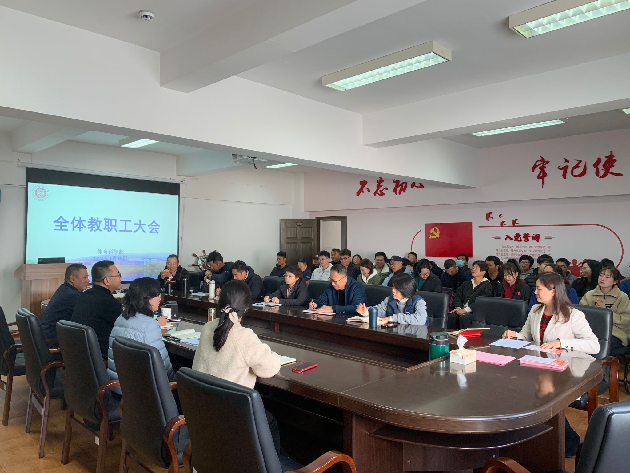 1月18日上午,抖阴 在体育馆四楼会议室召开学期末全体教职工大会,会议由抖阴 党委书记陈素云主持。学部主任刘海平、学部组织员赵建中以及全体教职工参会。