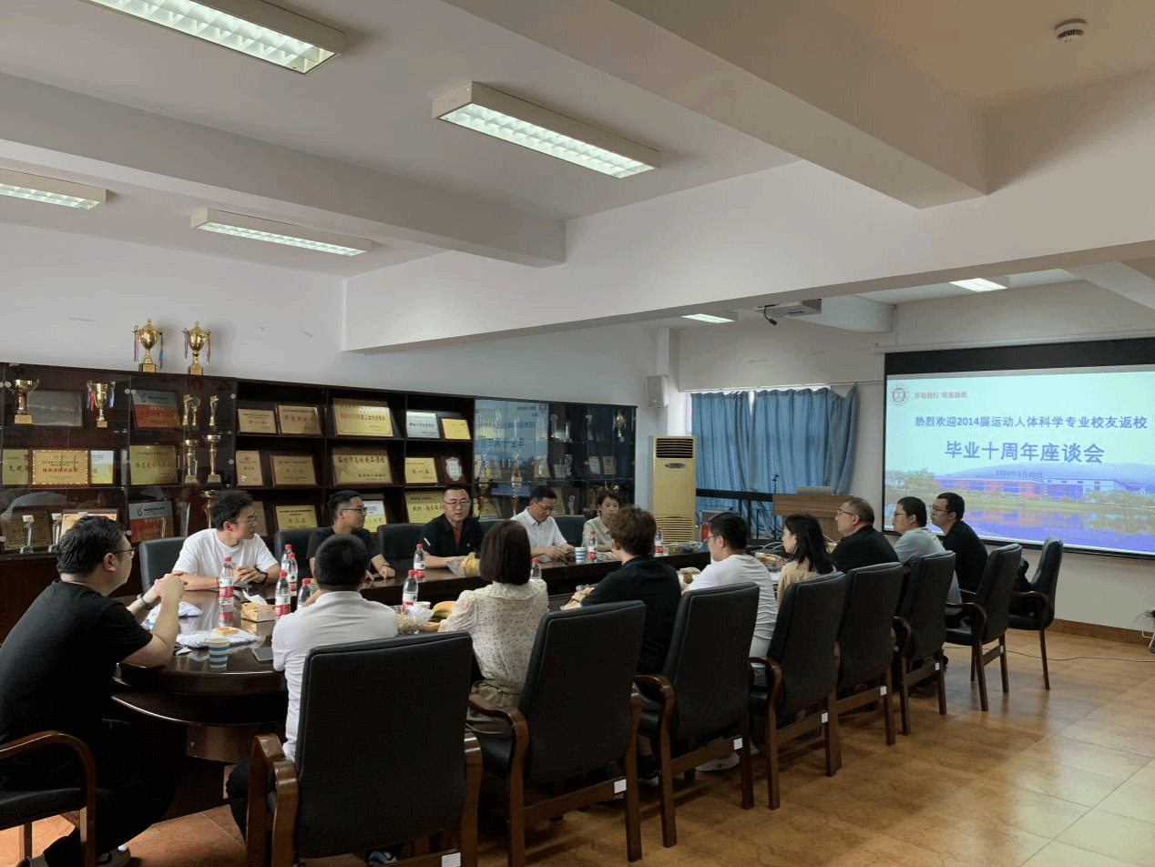 十年回首,情系温医。5月25日中午,抖阴 2014届运动人体科学专业校友值毕业十周年之际,重返母校,欢聚一堂,共叙情谊。抖阴 热烈欢迎校友回家,在体育馆4楼会议室,为他们举行欢迎仪式并开展座谈会。原抖阴 党总支书记李旭东老师和部分教师代表参加座谈会。抖阴 主任刘海平主持会议并讲话。