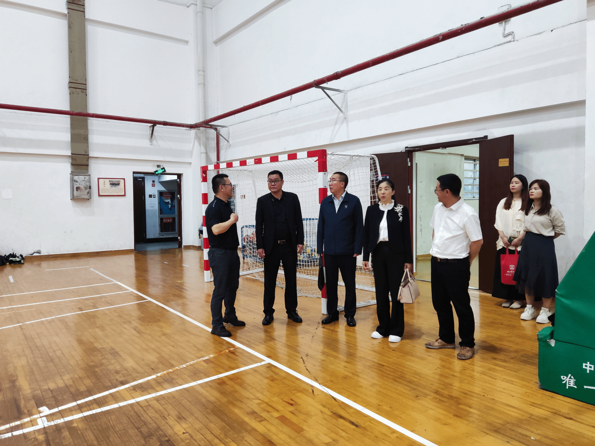 专家组成员在刘海平主任和仁济抖阴副院长戴建春的陪同下实地考察学校体育场馆设施等教学环境和条件,查看部分授课体育教师和上课学生情况,查阅自查自评表相关实证材料。