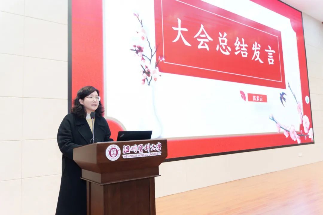 陈素云作大会总结发言。她指出,2025年是学校创建“双一流”高校的关键一年。此次会议既是对去年成绩的总结,也是对新一年努力方向的规划。同时,陈素云围绕校党委书记金焕民在学校新春第一会上的重要讲话精神,结合学部工作实际,着重从党建工作、人才队伍、体育教育方面强调并提出三点要求:一要进一步加强党建的顶层设计和党建品牌创建;二要进一步加强高素质教师队伍建设;三要进一步发挥体育教学在学校五育并举中的作用。最后,陈素云鼓励全体教师要开拓创新、拼搏奉献,以蛇行千里的劲头,共同书写抖阴 事业新篇章,为学校高水平大学建设和“双一流”创建交出体育的高分答卷。