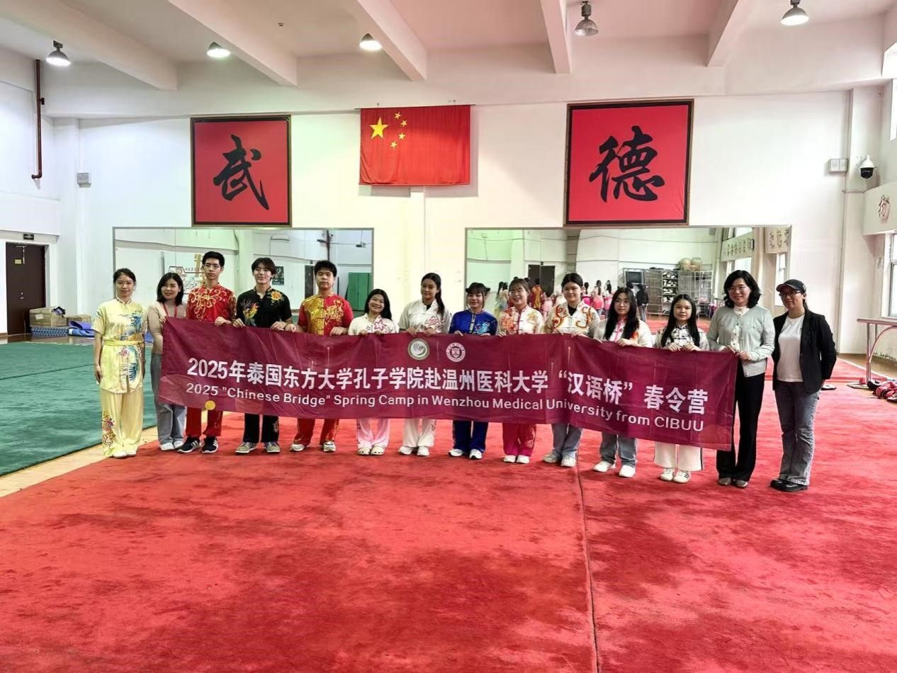 4月21日,抖阴 迎来了泰国东方大学孔子抖阴“汉语桥”春令营的学生。他们带着对中国文化的好奇与热爱,开启了一场特别的访学之旅。体育部党委书记陈素云、办公室副主任陈伟红接待了泰国东方大学孔子抖阴教师Duenatitan和学生一行。抖阴 陈捷思老师的中华剑术课程,让泰国学生们近距离感受到了中华传统武术的独特魅力。