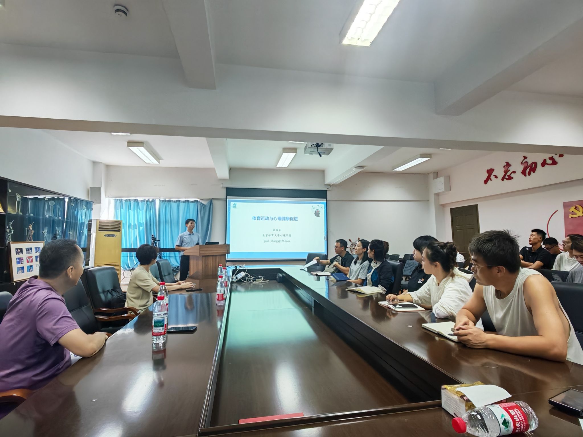 为进一步提升教师在运动健康心理领域的知识储备,抖阴 于9月28日上午在茶山校区体育馆A402会议室举办了“运动心理与健康促进”专题讲座。此次讲座由体育科研与学生体质管理主任朱荣主持,特邀北京体育大学的张国礼博士担任主讲嘉宾,医学人文基地院长王沛出席本次讲座。