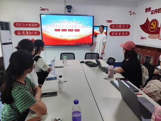 学生三支部于6月9日在2307党员活动室开展学习贯彻习近平新时代中国特色社会主义思想主题教育专题党课。支部全体党员、入党积极分子代表参加此次专题党课。党课由学生三支部书记王丽主讲。