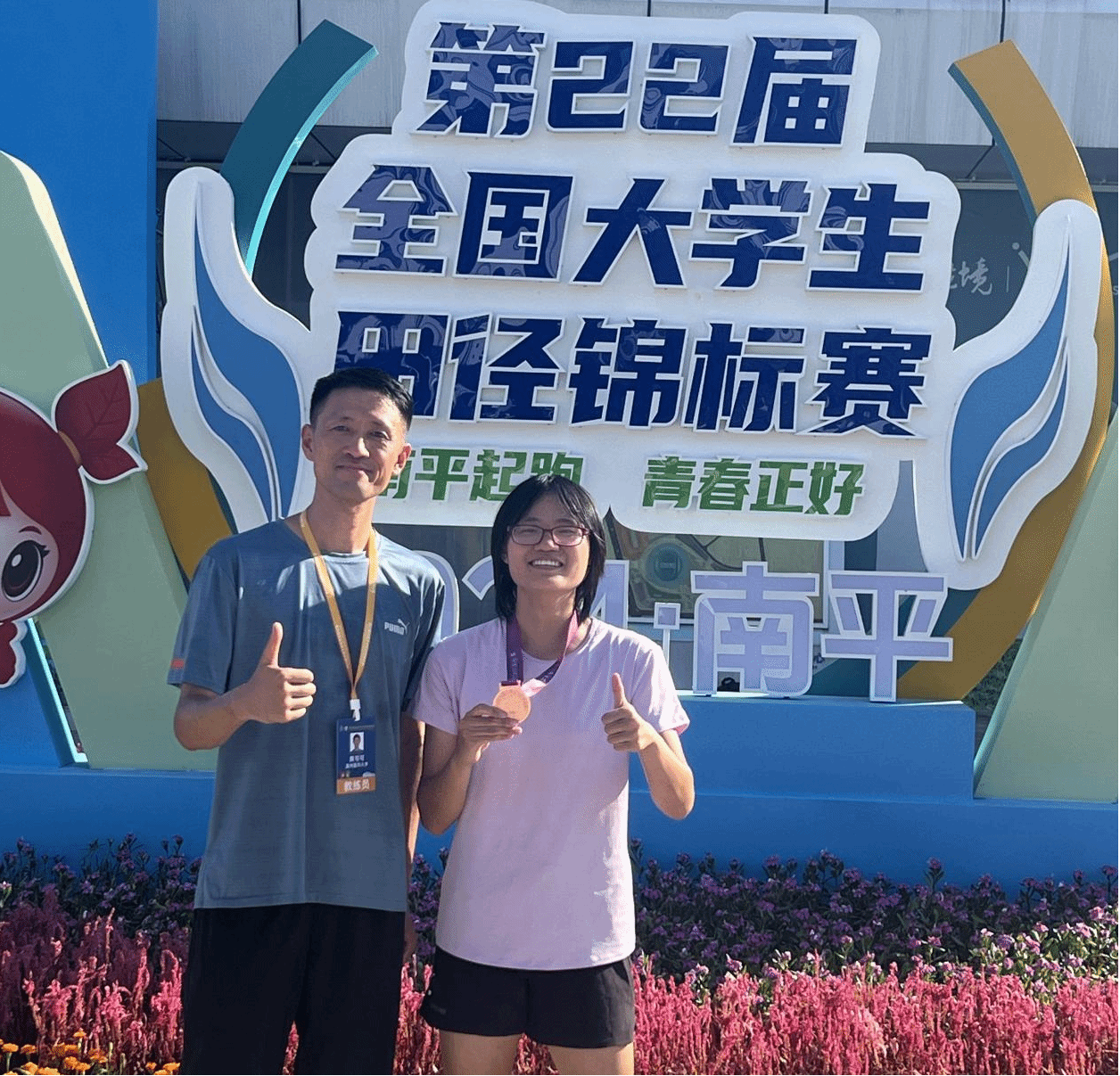 我校第二临床医抖阴的朱倩倩在教练员黄可可老师的指导下,通过刻苦的训练,在夏季热情洋溢的南平不断超越自我,用汗水和激情在赛场上书写了优异的成绩,最终获得女子100米栏铜牌,400米栏第四名,均打破我校在该项目的最高记录;由教练员黄浩老师指导的精神医抖阴陈莹同学获得女子800米第12名,1500米第10名,取得个人最佳成绩。