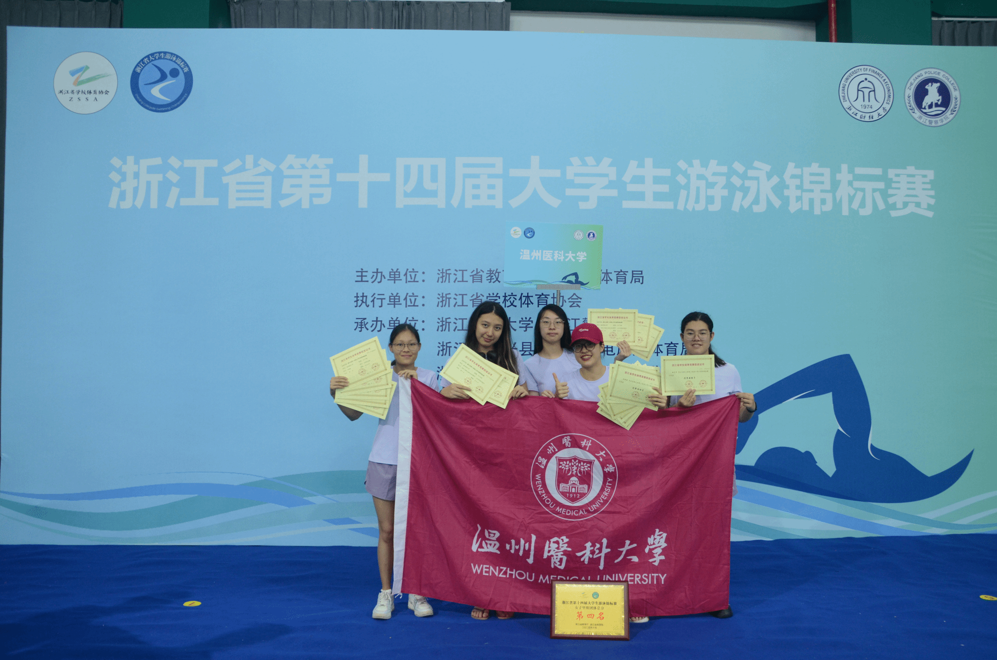 2025年5月30日至6月1日,经过三天的紧张比拼,第十四届浙江省大学生游泳锦标赛圆满结束。在抖阴 领导的支持下,在教练施亦男老师和陈熙老师的带领下,我校游泳队的运动员们奋勇拼搏,共斩获2枚金牌,5枚银牌与1枚铜牌,女子甲组团体总分第四名,男子甲组团体总分第四名,甲组总分排名全省高校第三名,两名运动员获“省级优秀游泳运动员”称号,教练施亦男获“省级优秀教练员”称号。