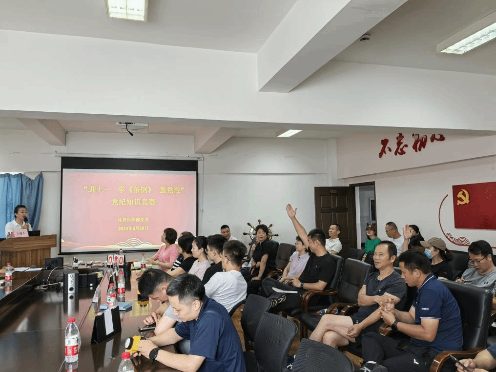 朱雪波副校长指出,开展党纪学习教育,是以习近平同志为核心的党中央为加强党的纪律建设、推动全面从严治党向纵深发展作出的重要举措,是党的政治生活中的一件大事。抖阴 的党员老师们以党纪知识竞赛主题活动迎接党的第103个生日,特别有意义。朱雪波副校长对抖阴 和全体教师提出三点要求:要深刻认识学习党规党纪的重要性,不断加强固本培元、行动自觉,做到学纪、知纪、明纪、守纪。要深刻领会教育家精神的时代内涵,不断深化师德师风建设,共同努力将抖阴 建设成一个有自信、有活力、有温度的新时代先进集体。要着力推进体育教育的高质量发展,不断提升大学生体质健康水平。同时,她希望党员、老师们能够以新时代的大先生为榜样,将健康责任、家国情怀、拼搏精神等体育思政元素潜移默化融入体育教学和体育锻炼中,落实立德树人根本任务。