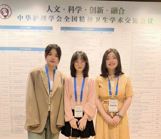 精神心理智慧护理研究中心研究生周思辰、江雨蕾、吕紫瑶全程参加了此次会议,聆听了各位专家及护理同仁的报告,周思辰同学以《利用回归方法和机器学习在家庭层面预测青少年非自杀性自伤行为》为题进行了口头汇报,得到了中华护理学会精神卫生专委会副主任委员李亚敏与中华护理学会精神卫生专业委员会委员王剑英的肯定与点评。江雨蕾同学以《探索照顾者互助培训项目在精神障碍患者 照顾者中的应用效果:一项类实验性研究》为题、吕紫瑶同学以《深度学习在核磁共振成像中检测抑郁症的诊断性能:系统评价》为题在壁报展区展示了精神心理护理相关的研究成果。参会期间,她们与来自全国各地的护理专家、学者、临床护士等不同岗位的护理工作者就精神心理护理的相关问题进行了讨论,加强了合作与交流,为后续开展研究提供了思路和支持。
