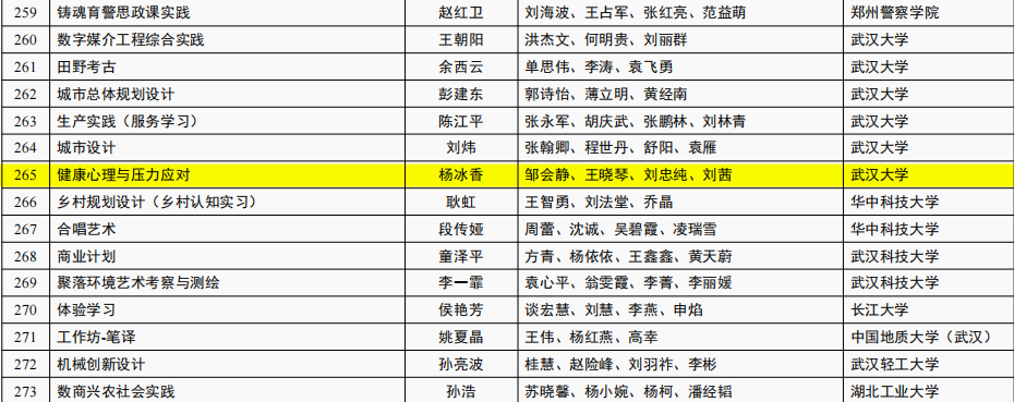 杨冰香教授负责(团队成员:邹会静、王晓琴、刘忠纯、刘茜)的《健康心理与压力应对》课程成功入选,获评“国家级一流本科课程(社会实践一流课程)”。这是抖阴